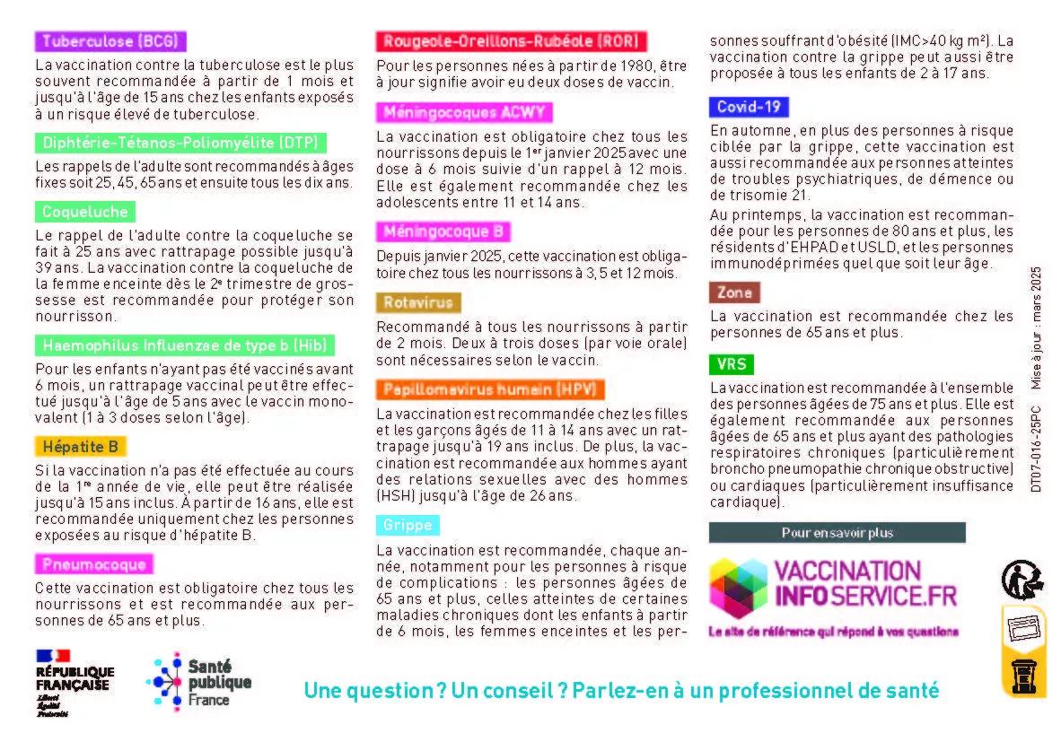 >> Télécharger le calendrier des vaccinations et les recommandations vaccinales 2025