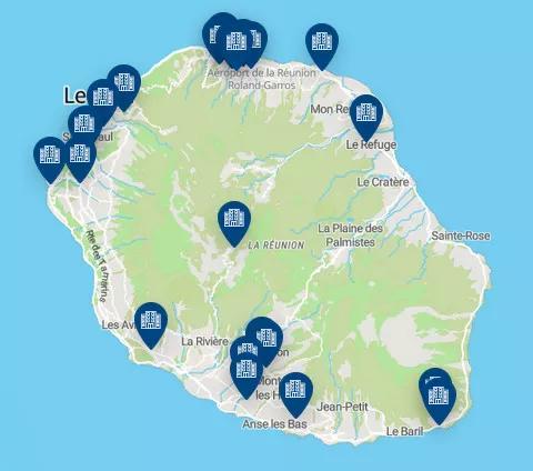 Cette carte recense les consultations de soins non-programmés à La Réunion :
