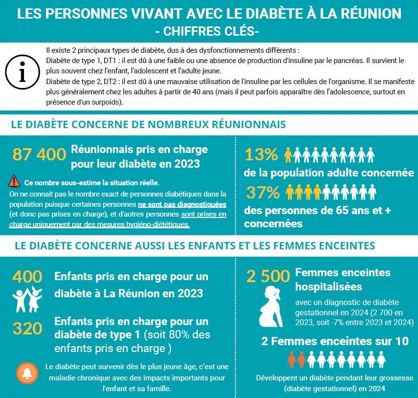 Synthèse des données (ORS, BEH Santé publique France) sur le diabète à La Réunion en 2023 :