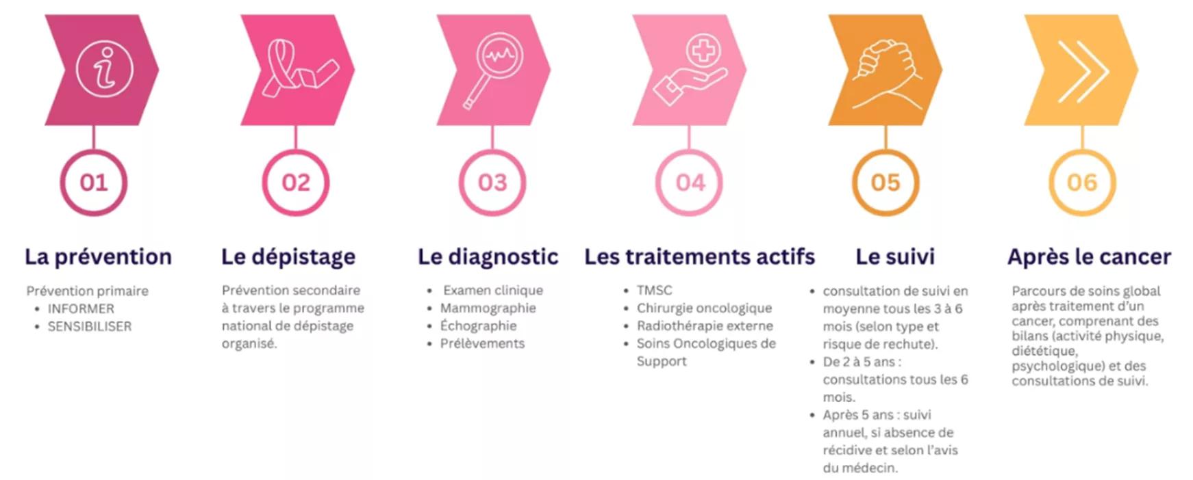 Les différentes composantes de la lutte contre le cancer du sein peuvent être ainsi schématisées :