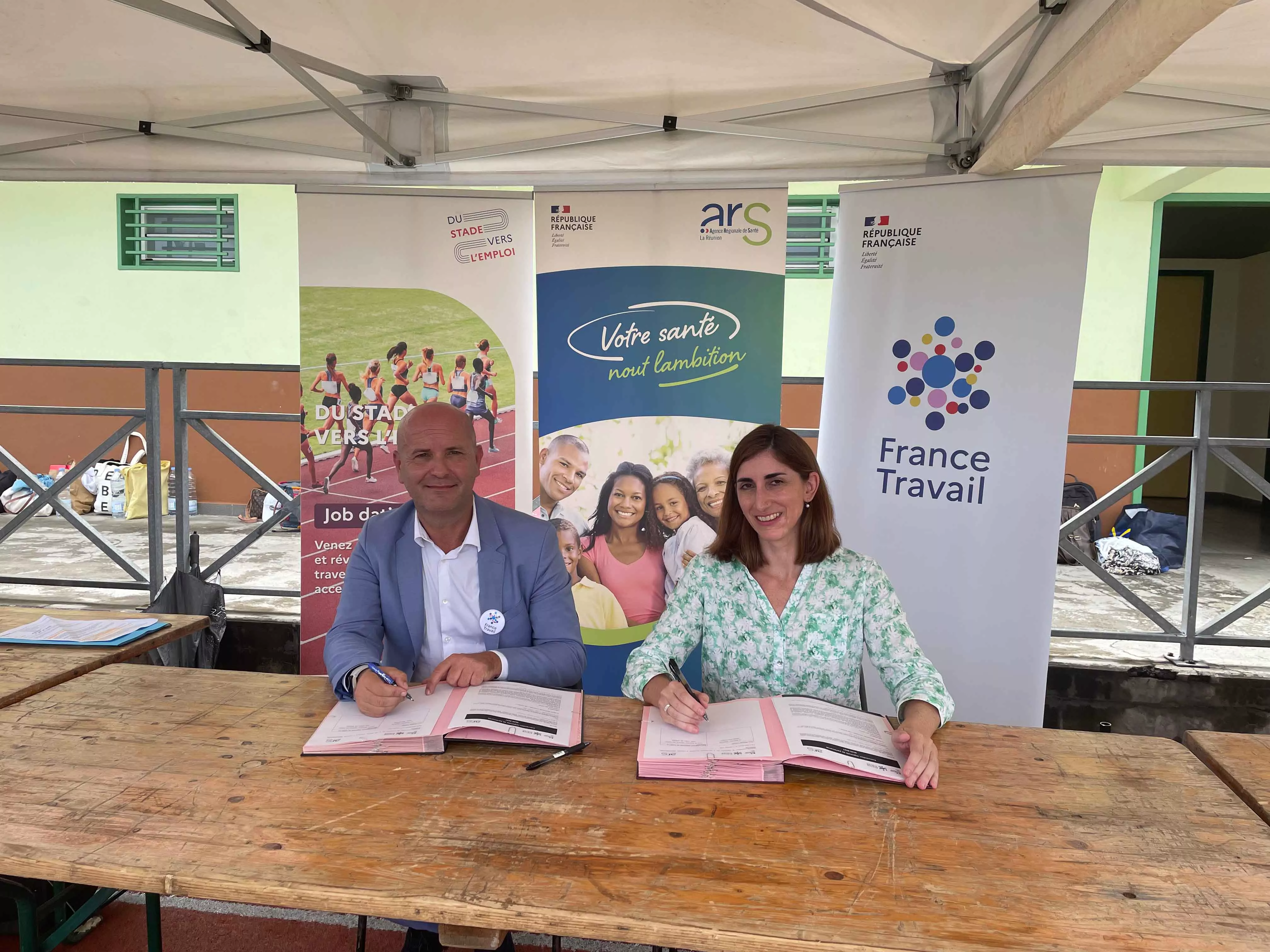 Cette signature s'est déroulée dans le cadre de l’événement « Du Stade vers l’emploi », organisé par France Travail et la Ligue Réunionnaise d’Athlétisme. Ce dispositif innovant de recrutement permet aux demandeurs d’emploi et aux employeurs de se rencontrer de manière anonyme autour d’activités sportives, favorisant ainsi des échanges plus authentiques et inclusifs.