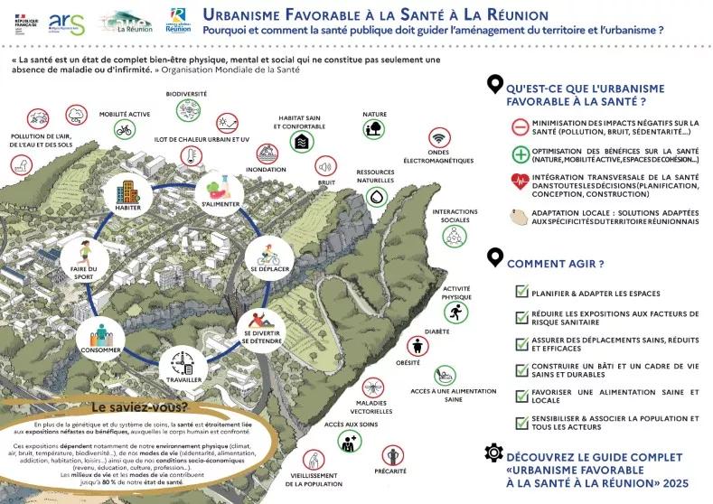 Illustré, pédagogique et riche en données probantes, ce guide constitue un outil indispensable pour accompagner les décideurs, techniciens, bureaux d’études, aménageurs et partenaires dans la création de projets urbains plus durables, plus sûrs et plus favorables à la santé de tous les Réunionnais.